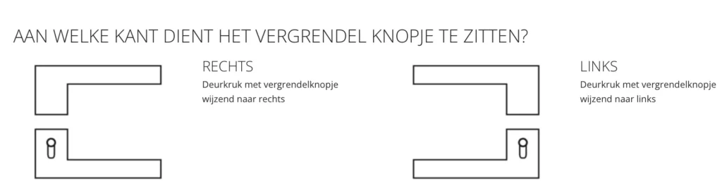 Bij bestelling dient te worden aangegeven of het vergrendelknopje bij de linkswijzende of rechtswijzende kruk dient te zitten.